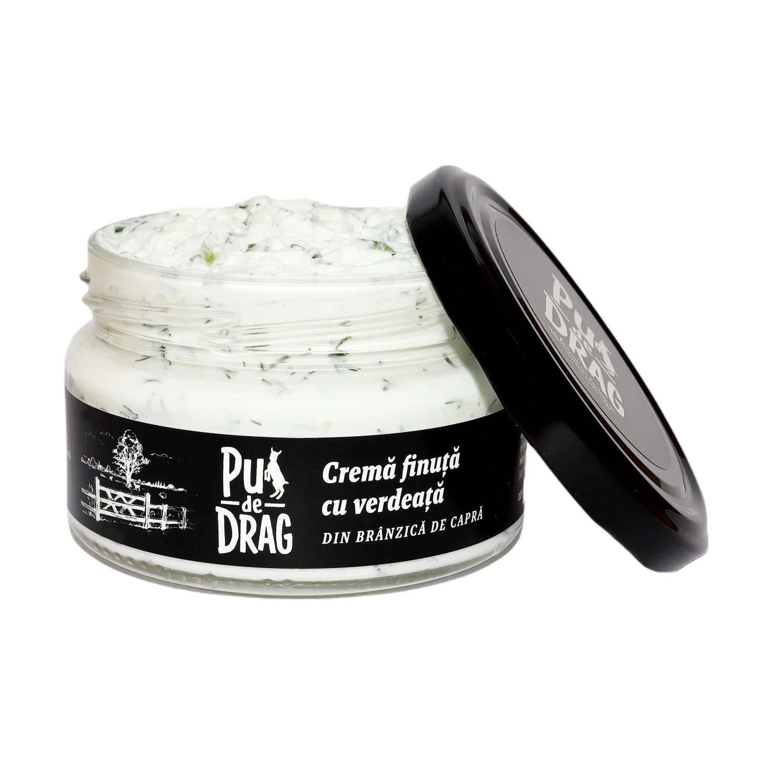 Descoperă gustul jucăuș al cremei finuțe cu verdeață, făcută din lapte de capră 100% natural, neomogenizat și pasteurizat cu grijă la temperatură joasă. Cu un amestec proaspăt de mărar și ceapă verde, această brânză aduce un strop de veselie și savoare în fiecare porție. Perfectă pentru a-ți înveseli gustările sau pentru a adăuga un plus de prospețime în rețetele tale preferate!